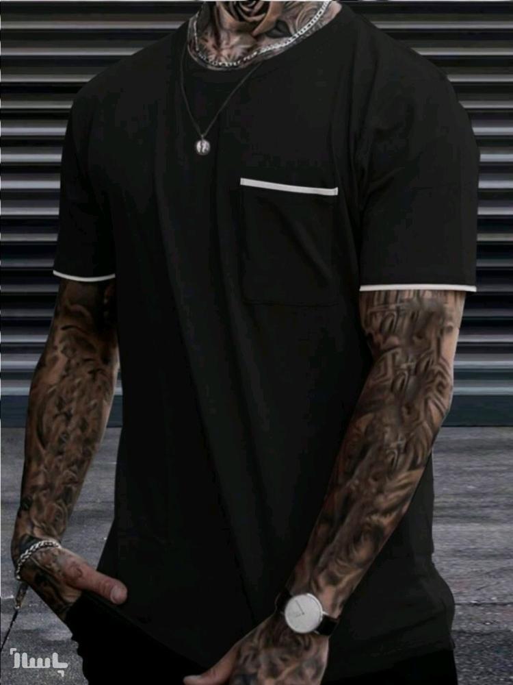 تیشرت جیبی مردانه با خط کنتراست مشکی سوپر پنبه