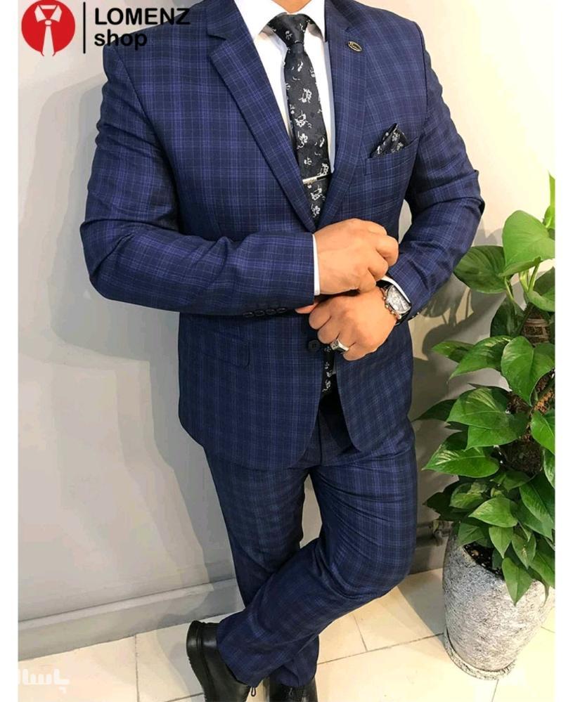کت و شلوار چهارخانه پیچازی مردانه سرمه ای سایز 48