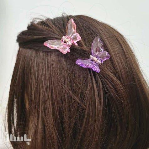 کلیپس مو دخترانه پروانه جفتی شیشه ای رنگی