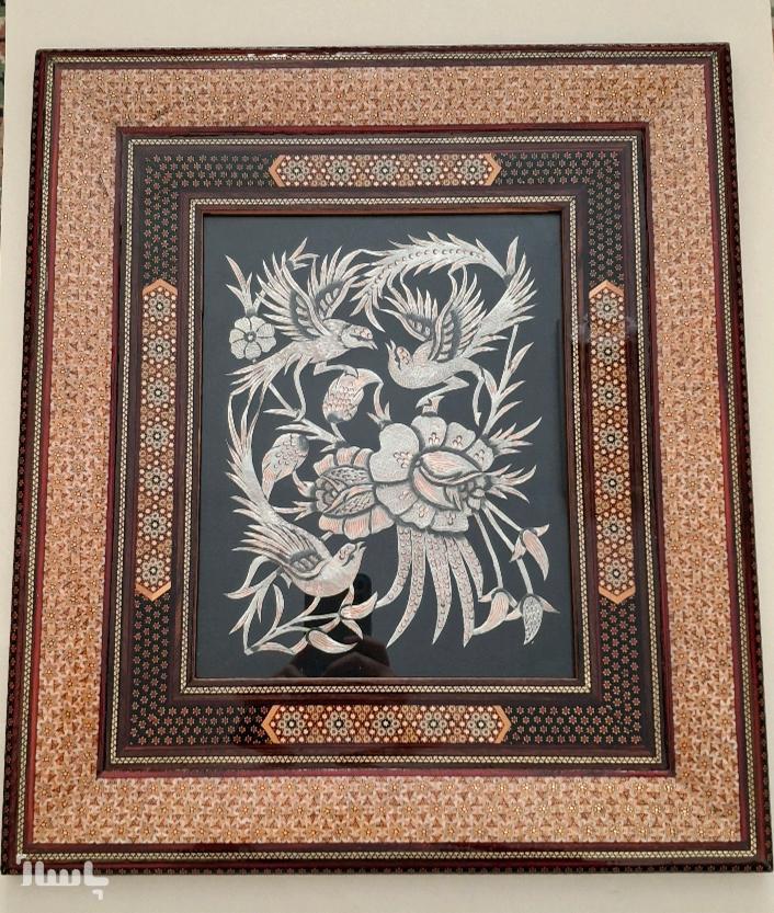 تابلو گل و مرغ خاتمکاری قلمزنی