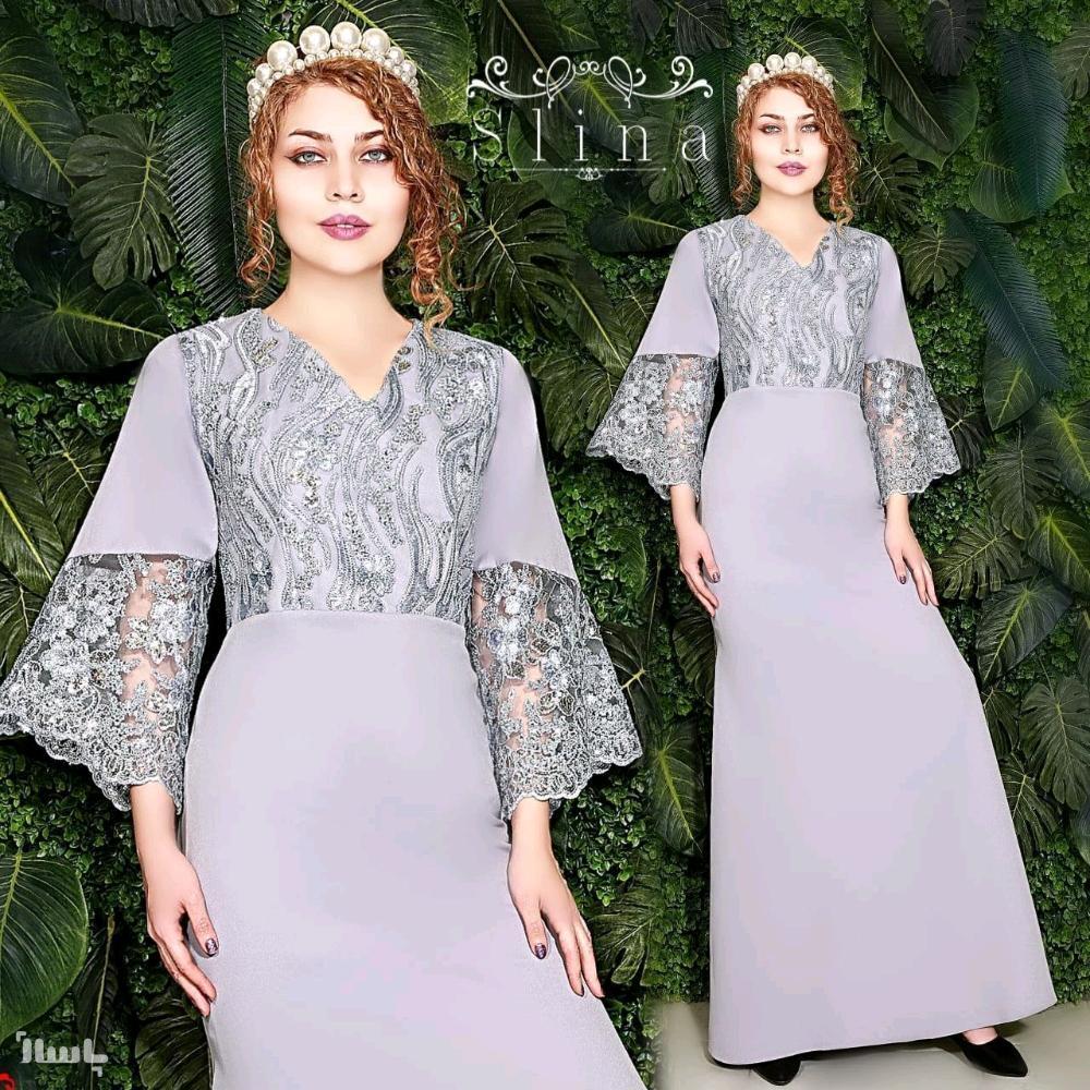 پیراهن شب زنانه مزون دوز کرپ مازراتی و خرجکار مدل درسا از سایز34تا60
