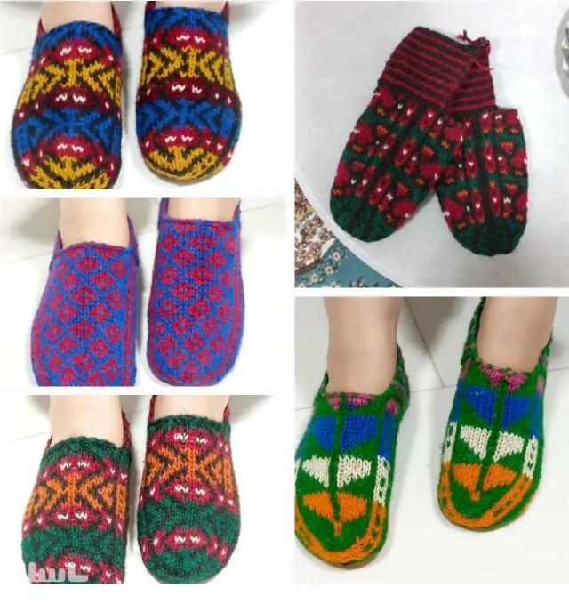 پاپوش بافتنی پشمی مناسب پاییز و زمستان.دررنگهای شاد و زیبا
