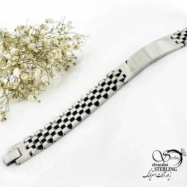 دستبند رولکس پلاک دار سفید مردانه برند استیل کد 20169