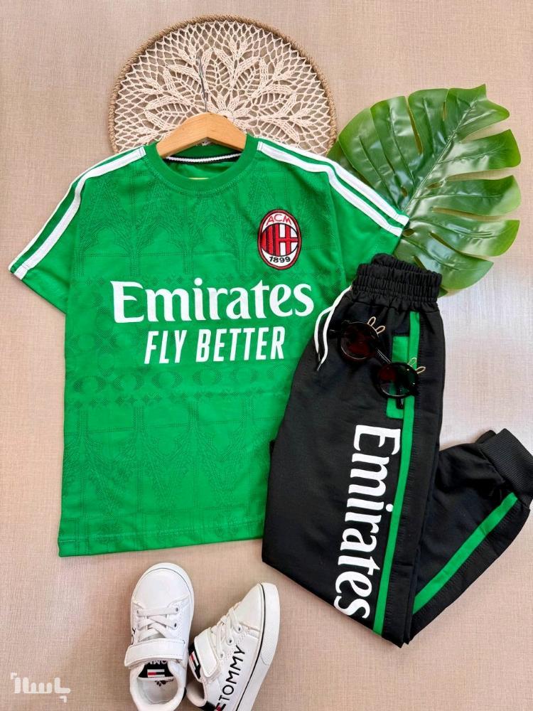 ست تیشرت شلوار پسرانه طرح کیت ورزشی تیم آث میلان