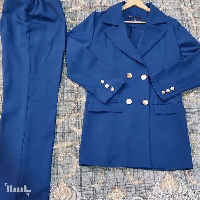 کت شلوار زنانه مدل نیلوفر کرپ مازراتی گرم بالا آبی بنفش دوسایز40تا 48