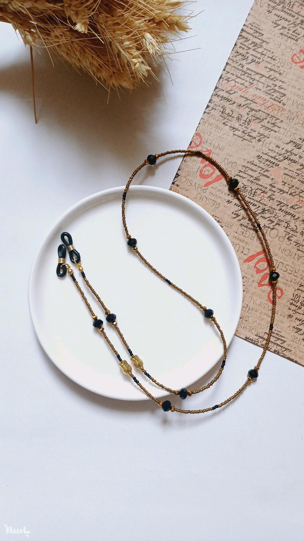 بند عینک منجوقی طلایی و گل لاله