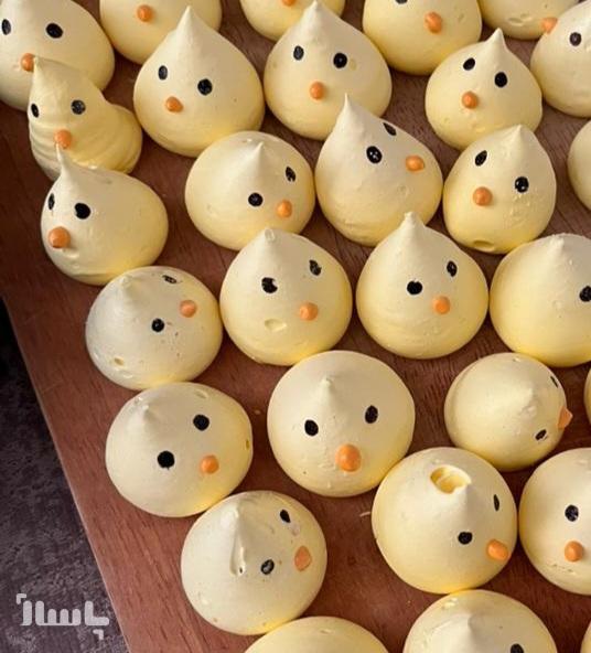 شیرینی مرنگ شکلک جوجه با طعم موز یا انبه