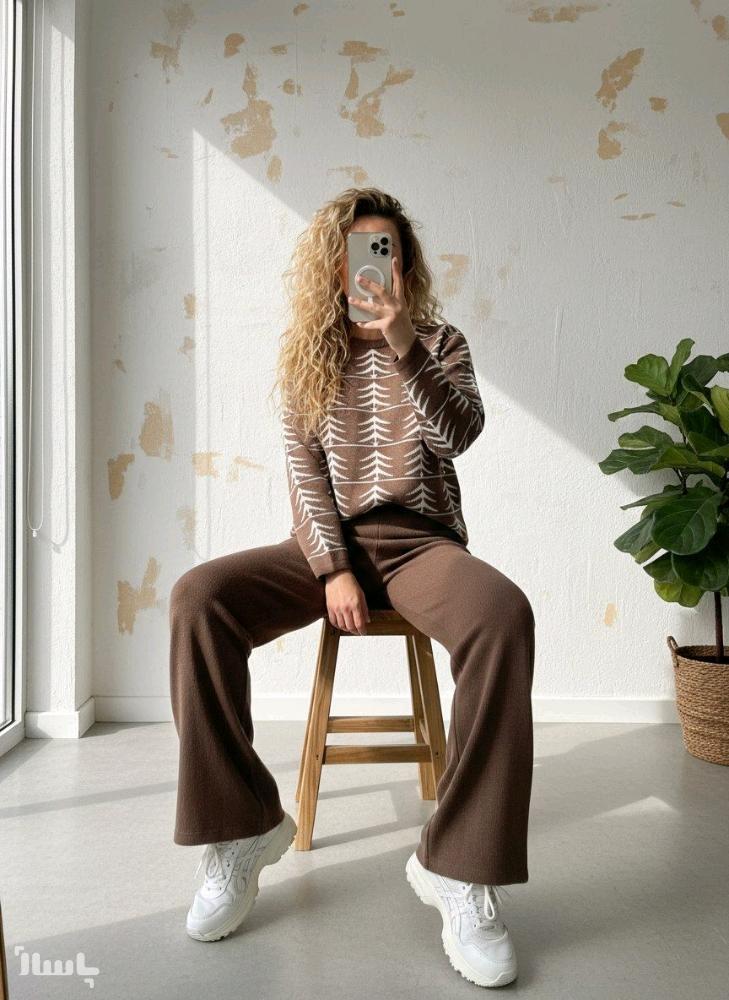 ست بلوز شلوار بافت زنانه مدل کاج جنس بافت اکریلیک متراکم درجه یک