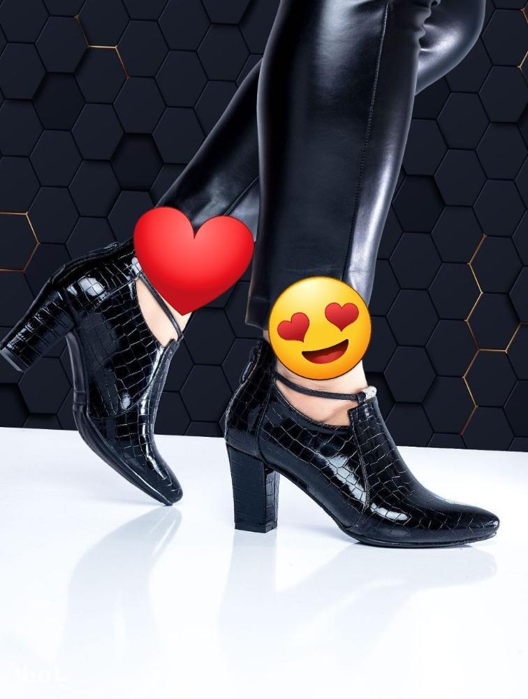 کفش مجلسی ورنی سنگی پاشنه 7 سانت مدل سه نگین سایز 37 تا 42