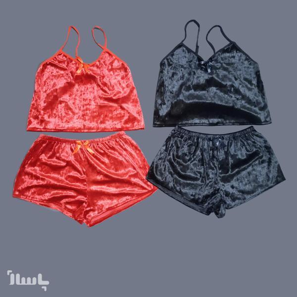 ست تاپ شورت مخمل Delwin کد 129 (قرمز و مشکی)