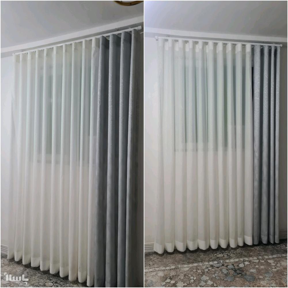 پرده حریر اسکاجی 7 رنگ درجه یک با والان ژاکارد نقرهای دوخت شده آماده