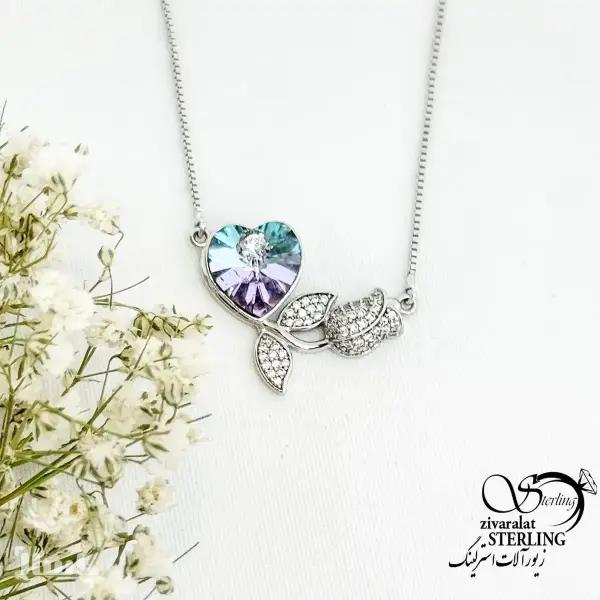 گردنبند ژوپینگ طرح گل رز و قلب با نگین سوارسکی کد 19708