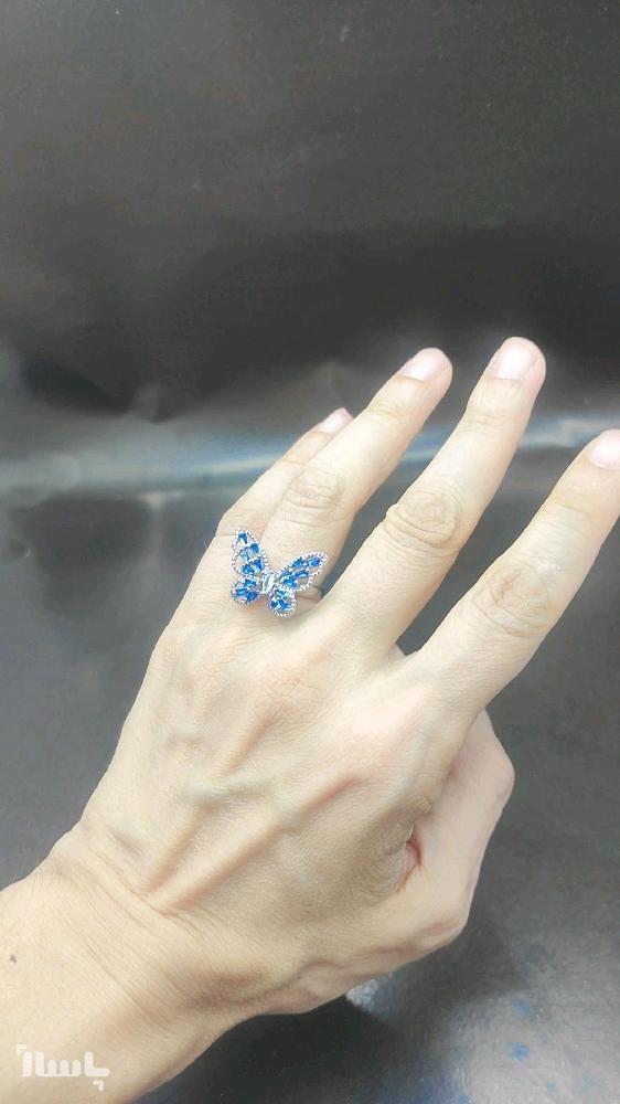 انگشتر پروانه نقرهای-آبی ما، با طراحی هنرمندانه و نگینهای جواهری درخشان، یک قطعه فشن بینظیر و منحصر به فرد است که به استایل شما روح میبخشد!