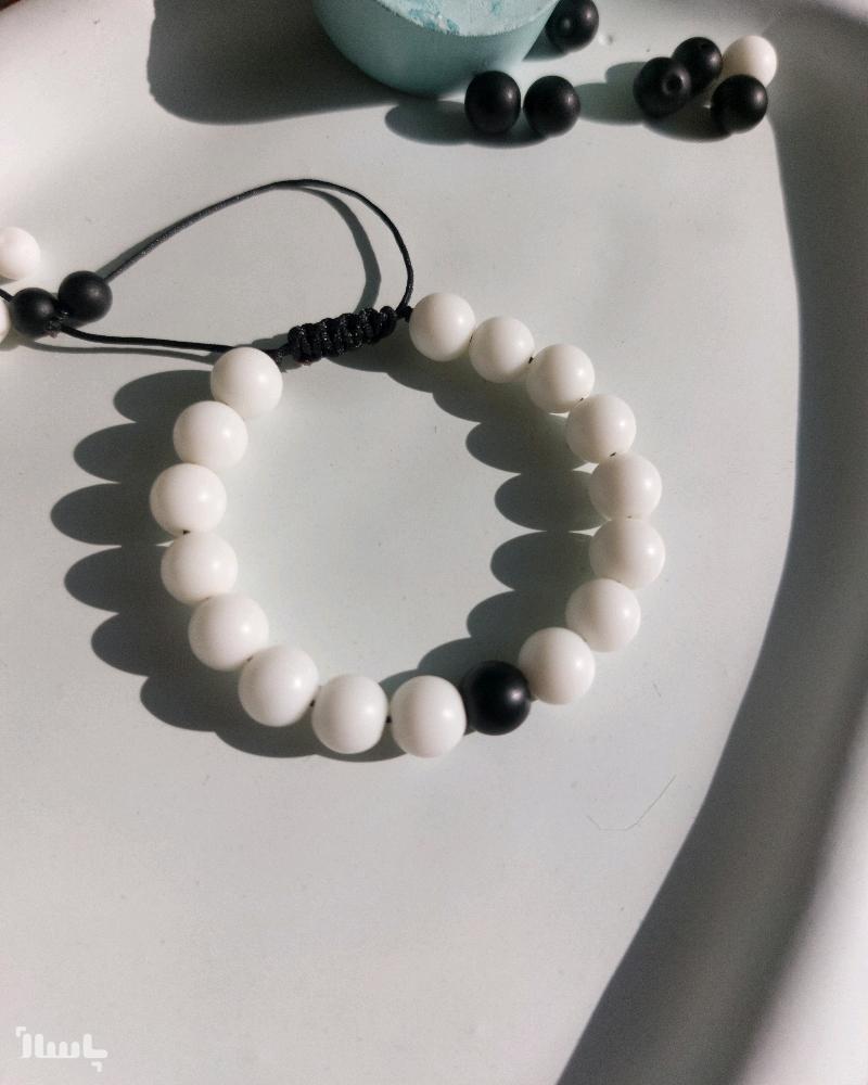 دستبند سنگ اونیکس سفید و مشکی کروی