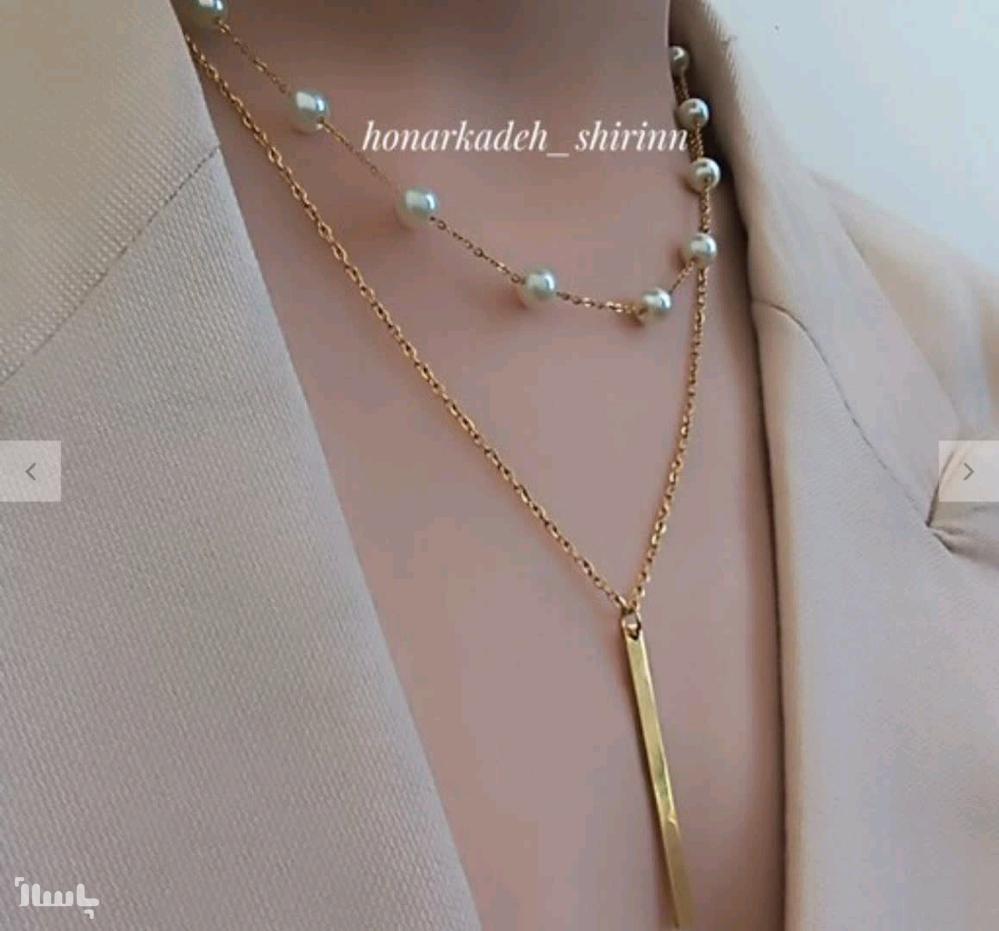 گردنبند دو ردیفه استیل زنانه مرواریدی