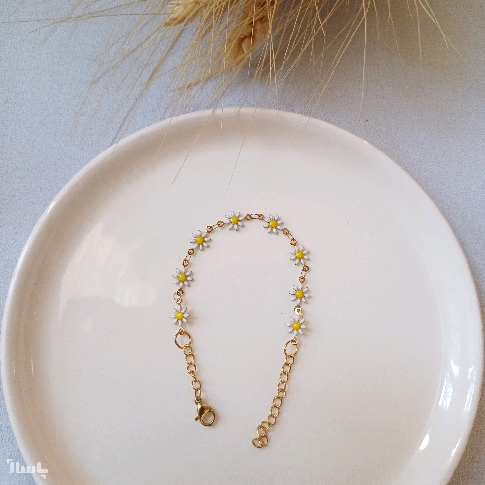 دستبند استیل زنانه طلایی رنگ ثابت طرح بابونه