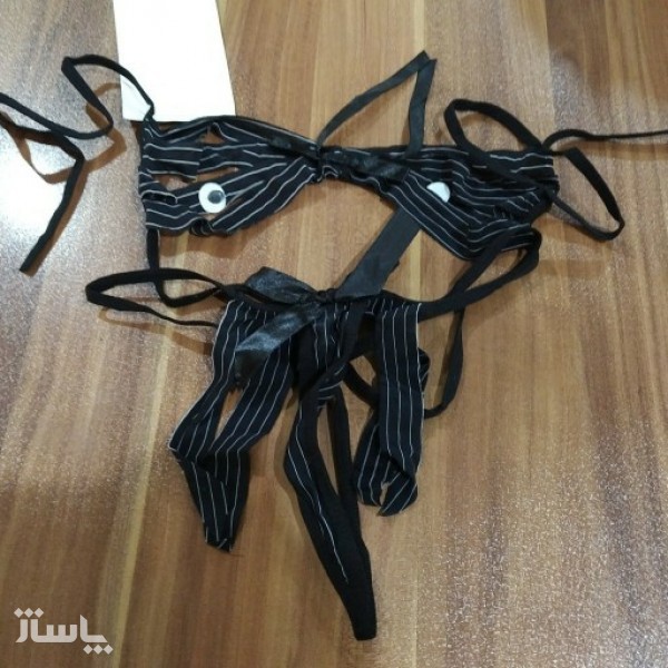 ست شورت و سوتین زنانه فانتزی مدل چشمی رنگ مشکی نحوه بسته شدنش به صورت بندی هست