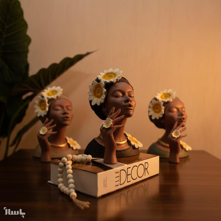 دکوراسیون منحصر به فرد: حتی زمانی که عود روشن نیست، این نیمتنه با جزئیات دقیق، گلهای زیبا و کنتراست رنگ پوست تیره و تزئینات طلایی، یک آیتم دکوراتیو خاص و جذاب باقی میماند.