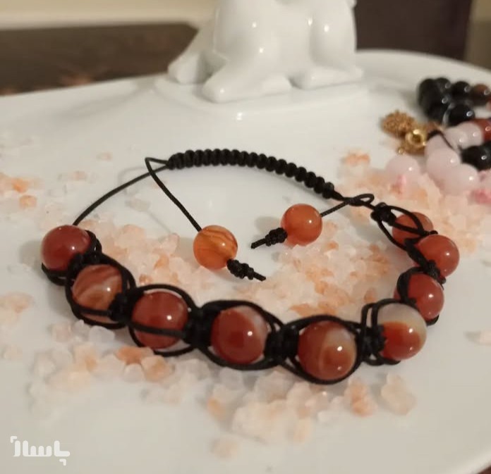 دستبند بافت عقیق کانلین سنگ طبیعی