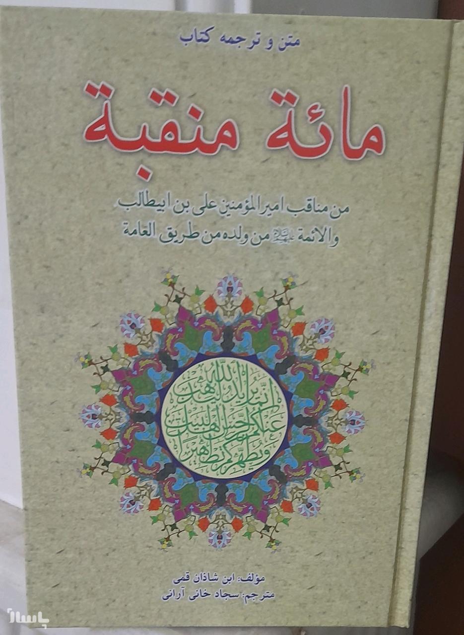 کتاب مشهور صدمنقبت، ابن شاذان قمی، که صدتا از مناقبت امیرالمؤمنین علی علیه سلام از میان مناقب ومنزلتهای بیشمار آنحضرت، که بصورت متن عربی وترجمه فارسی صفحه مقابل منتشر شده، این کتاب در قطع رقعی و جلد سخت آماده سازی شده است، واقعا بقول دانشمند بزرگ مسیحی، که آرزو میکرد کاش در هر قرن خالق یک علی ع، به انسان ها میداد،وباوجود خواندن صدبار نهجالبلاغه امام، که مجموعه ای از خطبه هاو حکمتهای حضرت میباشد، گفته باهربار خواندن مطالب بیشتری را کسب کردم، ومجموعه ای از کتب و مقالات درباره امام علی علیه سلام، که بیشمار است، هنوز دنیا نتوانسته این شخصیت والا را معرفی در خور کند،