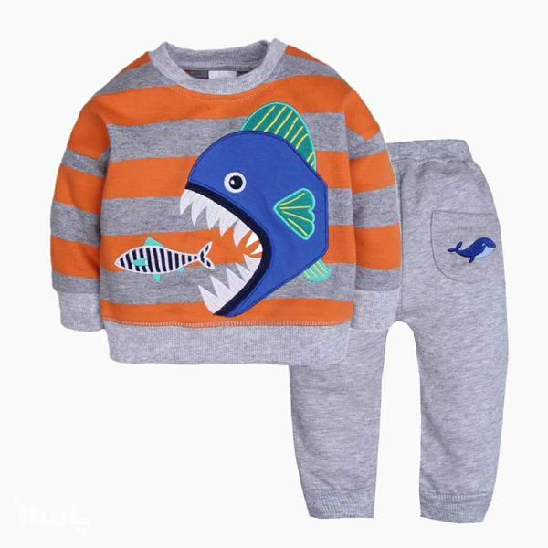 بلوز شلوار پسرانه طرح ماهی بچه گانه از مواد با کیفیت بالا تهیه شده ، و هیچ آسیبی به پوست کودک شما وارد نمی کند.