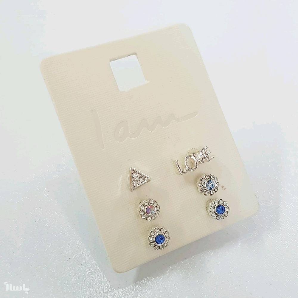 پک سه جفتی گوشواره گلگوش نامتقارن نگین رنگی ، کار فوق العاده زیبا و مینیمال