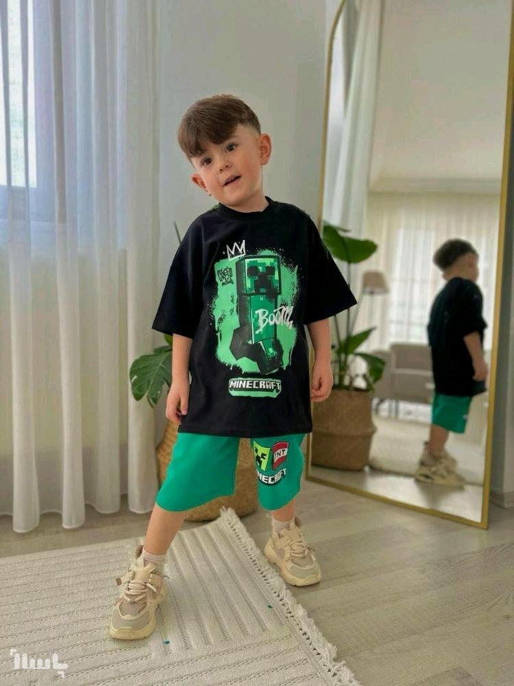 تیشرت شلوارک پنبه اعلا ماینکرافت مشکی