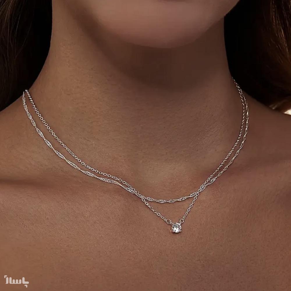 گردنبند 2 لایه تک نگین در 2 رنگ