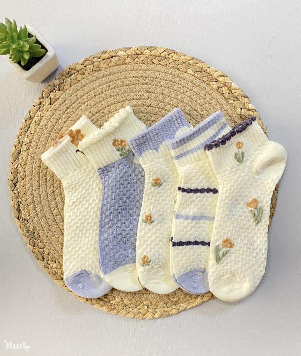 جوراب مچی کشی طرح گل سوپر پنبه وارداتی