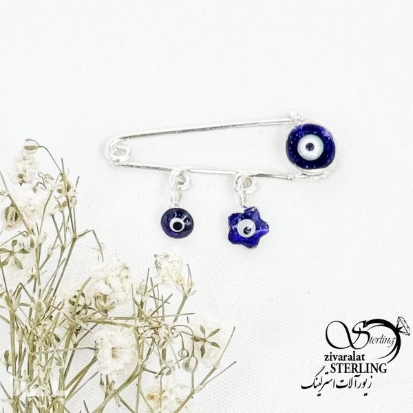 سنجاق سینه نقره 925 عیار آویز چشم نظر کد 17333