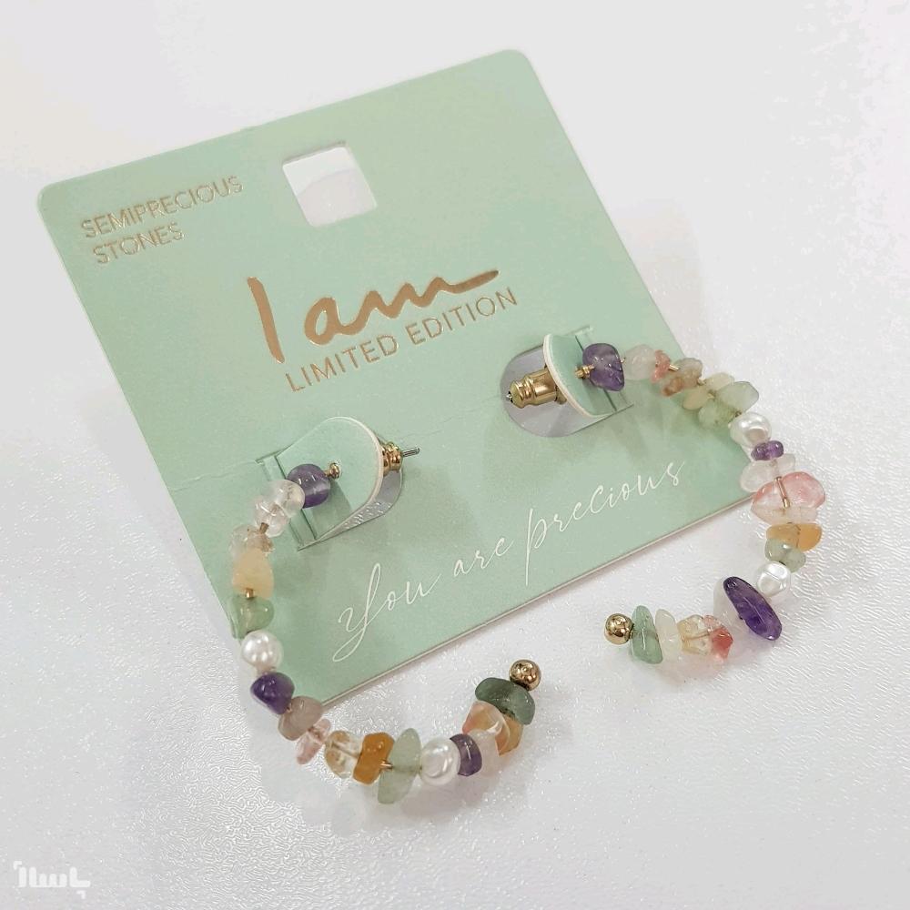 گوشواره نیم حلقه کار شده با سنگ های طبیعی اصل، کیفیت فوق العاده عالی و بسیار زیبا از سری لیمیتد ادیشن iam