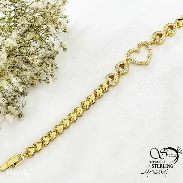 دستبند طرح قلب نگین دار جواهری کد 20461