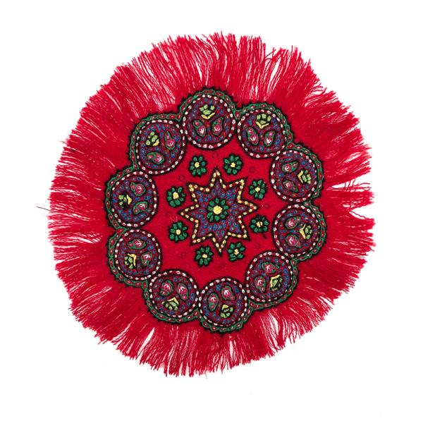 رومیزی پته دوزی طرح قهر و آشتی رنگ لاکی 25 سانتی