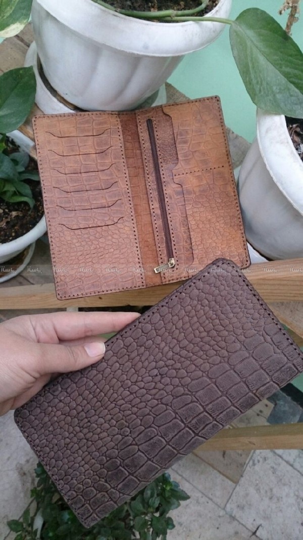 کیف پول دو لت ،چرم طبیعی ،دست دوز ،چرم شتری طرح کروکودیل،قابل ارائه با چرم گاوی و بزی