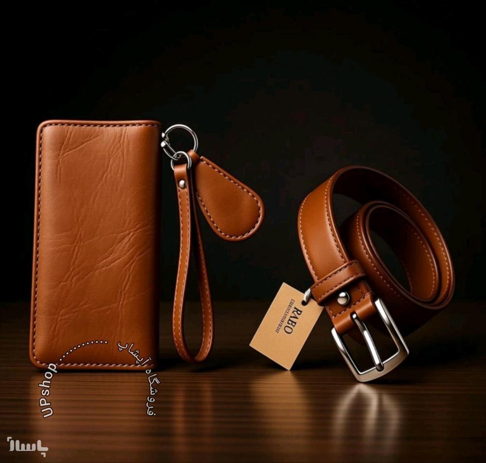 ست هدیه کیف و کمربند چرمی رابو | پشت چرم سوگو درجه یک، سگک استیل، دوخت عالی، مناسب هدیه
