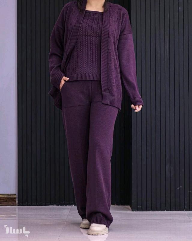 ست سهتیکه بافت ( جکت شلوار و تاپ )Cardigan