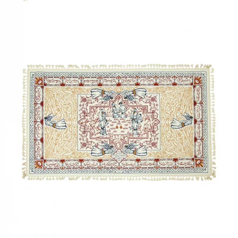 متن روی سفره: این سفره به جهت وجود نازنین(نام شما)، به قلم هنرمدان ایرانی آراسته شد؛امید است خانهتان به نور برکت مزین گردد.