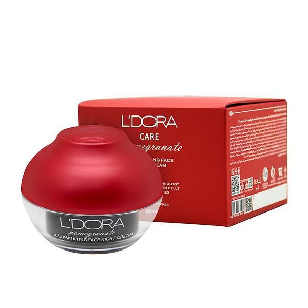 کرم روشن کننده شب صورت و گردن انار مناسب انواع پوست لدورا 50 میلی لیتر