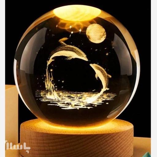چراغ خواب مدل گوی کریستالی طرح دلفین قطر 6