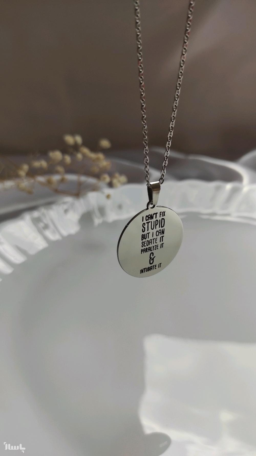 گردنبند استیل دایره حکاکی متن دلخواه(ارسال رایگان)