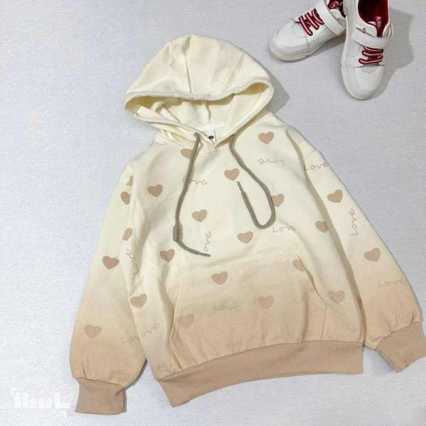 هودی دخترانه شیک کرم طرح قلب حارجی