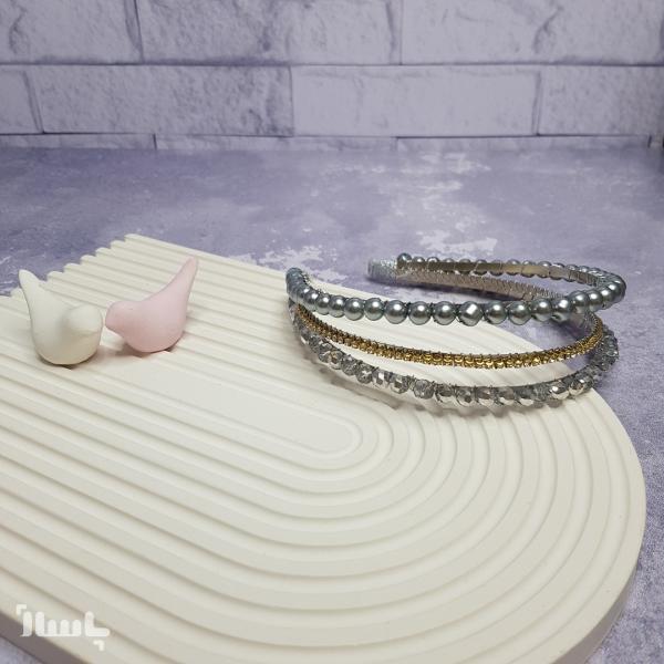 تل نگین سه لاین ساخته شده با مروارید سنگی و نگین متری و کریستال