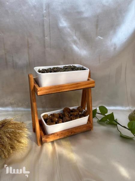 عنوان: استند 2 طبقه مستطیل چوب راش: سالاد و دسر در قابی شیک و کاربردی!