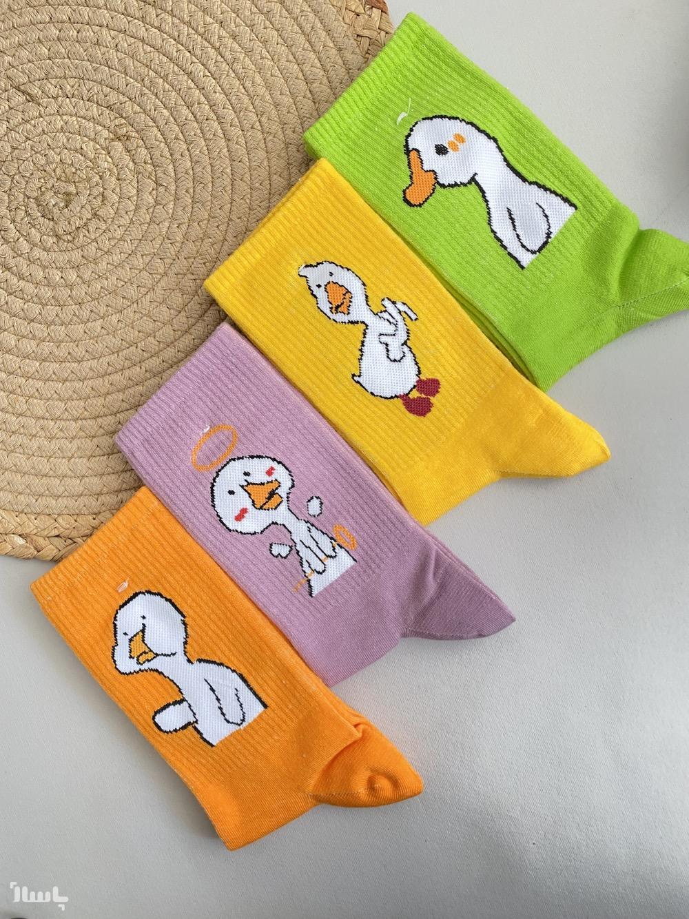 جوراب فانتزی ساقدار، طرح اردک، مناسب 36 تا 41، نخ پنبه