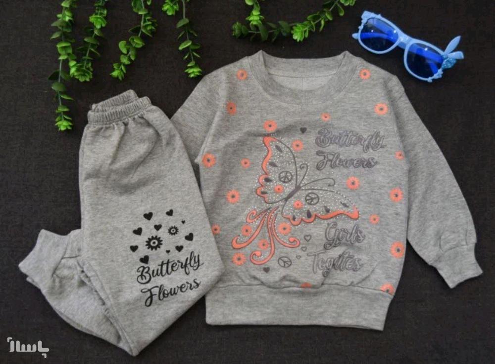 بلوز شلوار دخترونه ملانژ طرح پروانه