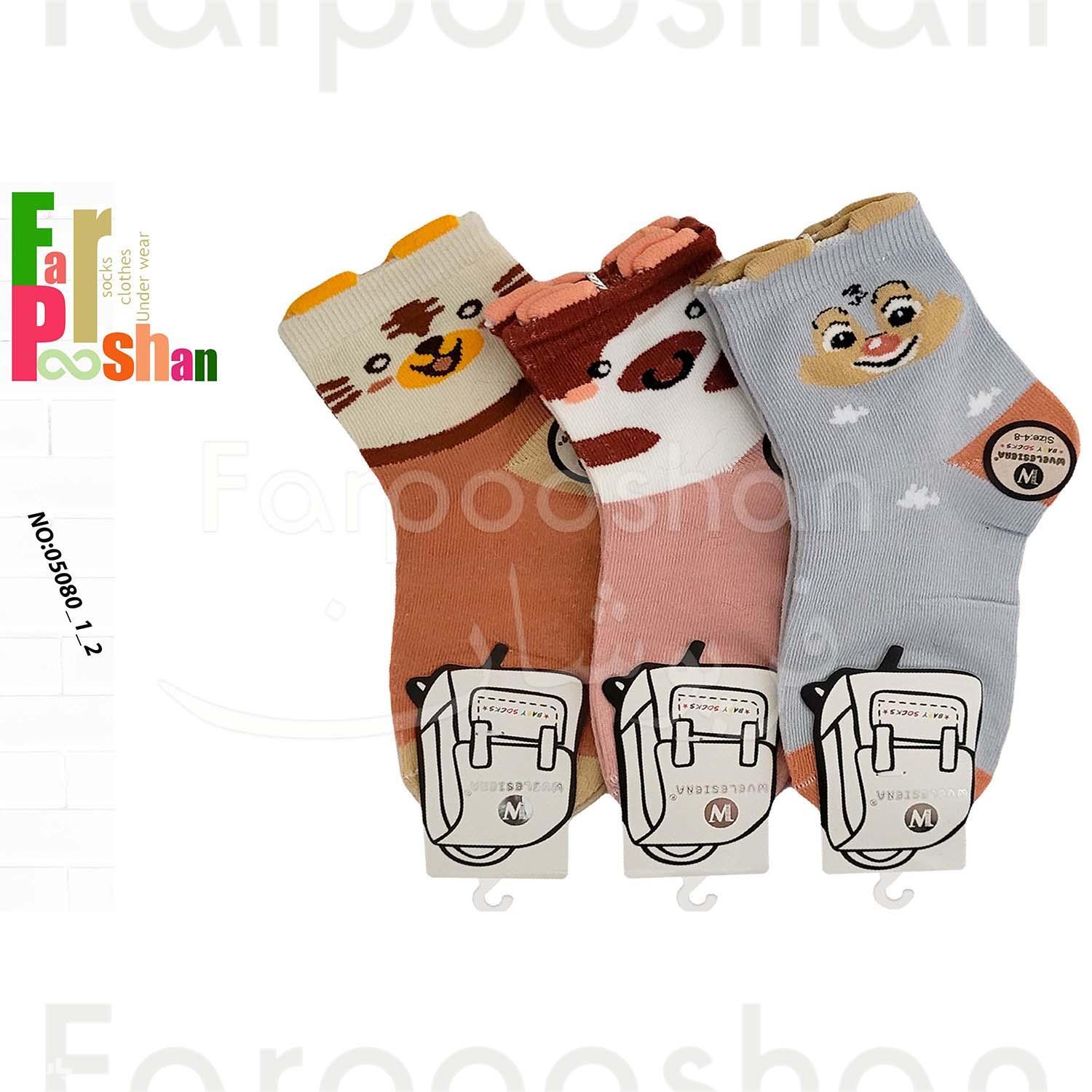 جوراب دخترانه مدل صورتک 2-1-05080 بسته 3 عددی