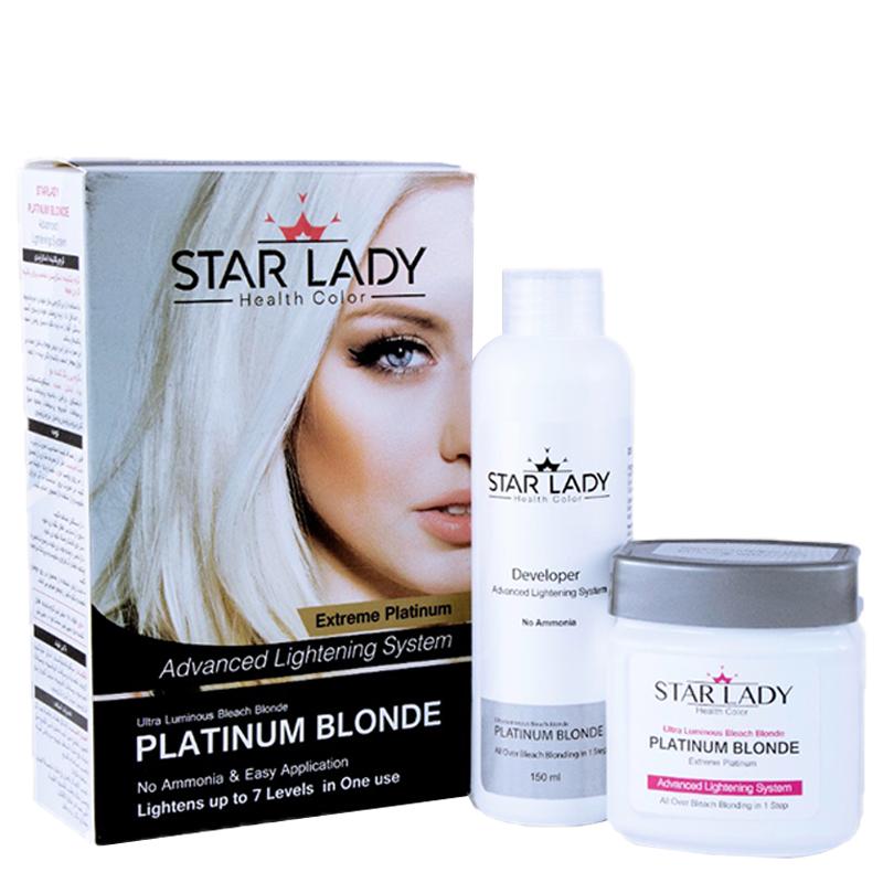 به عبارتی کرم پلاتینه استار لیدی موهای طبیعی را طی یک مرحله از رنگ طبیعی به رنگ پلاتینه روشن تبدیل می نماید.