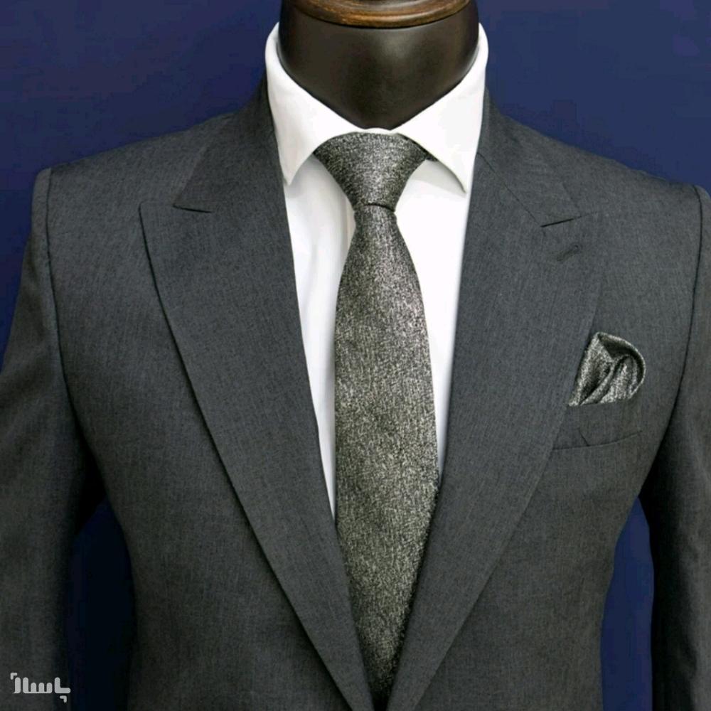کت و شلوار فاستونی مردانه رنگ زغالی سایز 58 بسیار شیک
