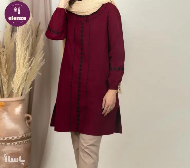 مانتو الیاف طبیعی گلدوزی شده مدل میخک