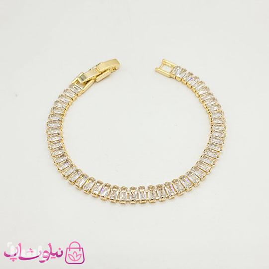 دستبند زنانه تنیسی مدل طلایی نگین باگتی سفید کد 300